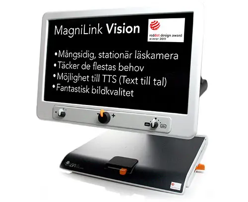 LVI Low Vision International is a world-leading Swedish manufacturer of quality visual tools. The picture shows the MagniLink Vision reading camera, which is used to read with powerful magnification, which makes it easier for visual viewing. For all our reading cameras, simplicity is important. Controls should be tactile and easily identifiable for best user friendliness.
