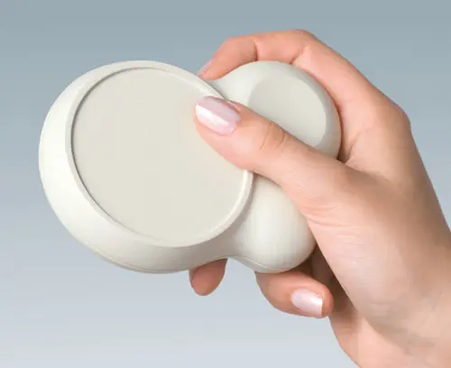 An enclosure that can be held with one hand and operated with the second hand. Two-part enclosure design. Recessed surface for membrane keyboards. Separate recess for special functions. Attachment domes for a PCB in the top part.