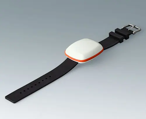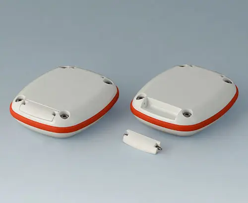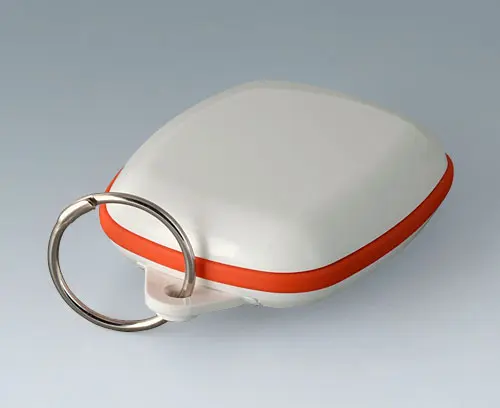 Modern small enclosure specifically designed for "wearable technologies". Three-part design consisting of highly polished top and bottom parts and a matt TPV sealing ring.