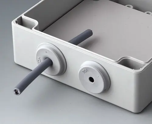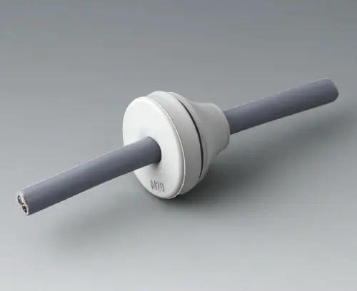 Simple cable grommet, easy to install, with easy-to-pierce membrane. Tight fit as soon as the cable is pulled backwards a little. Free of halogens. Suitable for wall thicknesses from 0.039" - 0.157" and for cable diameters from 0.315" - 0.512". Operating temperatures from -40°C to +100°C. Borehole ø 0.807".