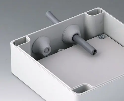 ROBUST-BOX WIDTH 3.150", Vers. I Robust plastic enclosure, ideal for electrical and electronic applications. Case shells either usable as top or base part. Each case part contains threads and fixing towers. Screw fixing outside of the sealing area. Recess of approx. 0.031" for use of membrane keyboards.