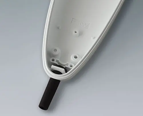 STYLE-CASE L Two-piece hand-held enclosure with an ergonomic, robust design and a pleasant touch sensation. Offers protection up to IP 65 with sealing (accessory). Protection class IP 40 without sealing. Attachment pillars for PCBs and components in the top and bottom parts.