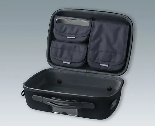 Carry case 340 with handle Largest version of the standard cases with a carrying handle as well as 2 eyelets for using the shoulder strap (accessory). The carry case can be fitted with your logo or nameplate for your company branding (logo window, zipper).