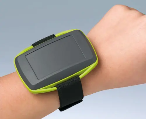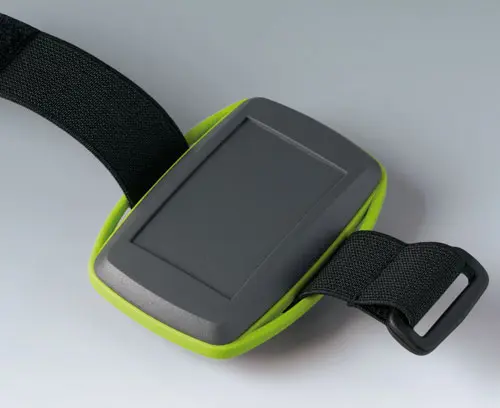 ERGO-CASE XS Three-part enclosure in ergonomic design to wear on the body. Wrist strap as accessories. TPE ring for a pleasant touch sensation. Fastening pillars and fixing supports for PCBs and integrated parts in the bottom and top part. Recessed operating area for the protection of the membrane keyboard.