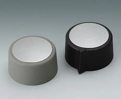 COM-KNOBS 31, with recess Suitable for rotary potentiometer with round shaft ends according to DIN 41591. Collet system for convenient knob assembly from the front. Borehole without chamfer.