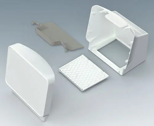 Order with COMMUNITEC S and M basic housings. Robust design with a honeycomb pattern ensures a high degree of rigidity and adequate safety for high-quality functional components. Integrated fastening pillars are provided for PCBs or mounting plates.