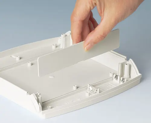 The slot-in panel can be used as interior partition or separation, for example to protect the electronics when changing batteries. Integrated guide ridges, max. 2 slot-in panels each case.