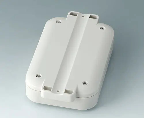 2-part plastic enclosure with flat top part. The bottom part has integrated flanges for quick wall mounting or for installation on pipes/round profiles. Robust design with proven tongue and groove connection. Screw connection with stainless steel screws and Torx drive. Fastening pillars for PCBs and components in the top and bottom parts.