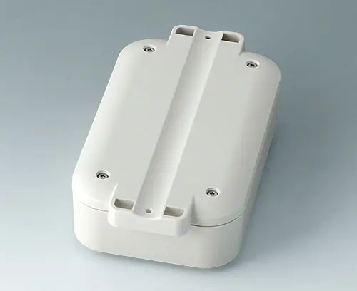 2-part plastic enclosure with flat top part. The bottom part has integrated flanges for quick wall mounting or for installation on pipes/round profiles. Robust design with proven tongue and groove connection. Screw connection with stainless steel screws and Torx drive. Fastening pillars for PCBs and components in the top and bottom parts.