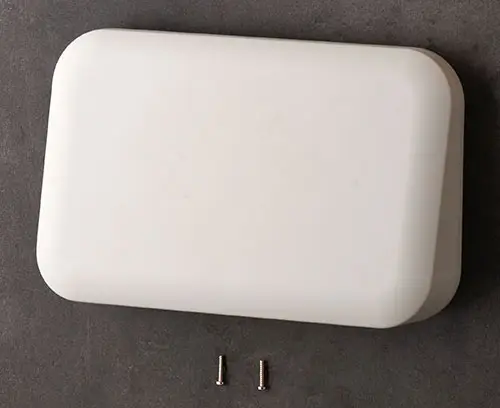 The adapter (4.173" x 2.953") is attached to the bottom part of the enclosure by 4 screws. 4 boreholes ø 0.138" are required. The adapter makes it possible to clip the enclosure quickly and easily into the holder mounted on the wall. Optionally, the parts can be secured with 2 screws, thus offering additional protection against removal.