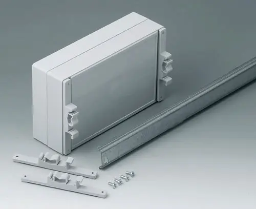For fastening the cases to DIN-rails according to DIN EN 60715 TH35. For ROBUST-BOX width 4.724".