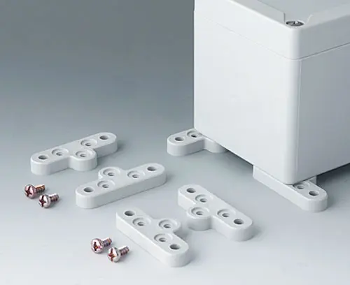 Wall-mounting brackets made of plastic for external wall mounting. Installation above, below or laterally, as required.