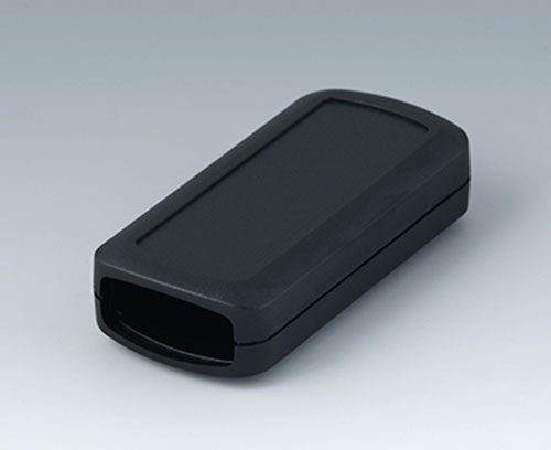 CONNECT M Basic enclosure, 2-piece, with convex and flattened shell. Recessed surface to protect the membrane keyboard, decor foil or label. Both end sides open, and end parts or the cable gland kits can optionally be mounted there (accessories). Four attachment domes for mounting a PCB in the flattened shell. Plastic enclosure snaps together.