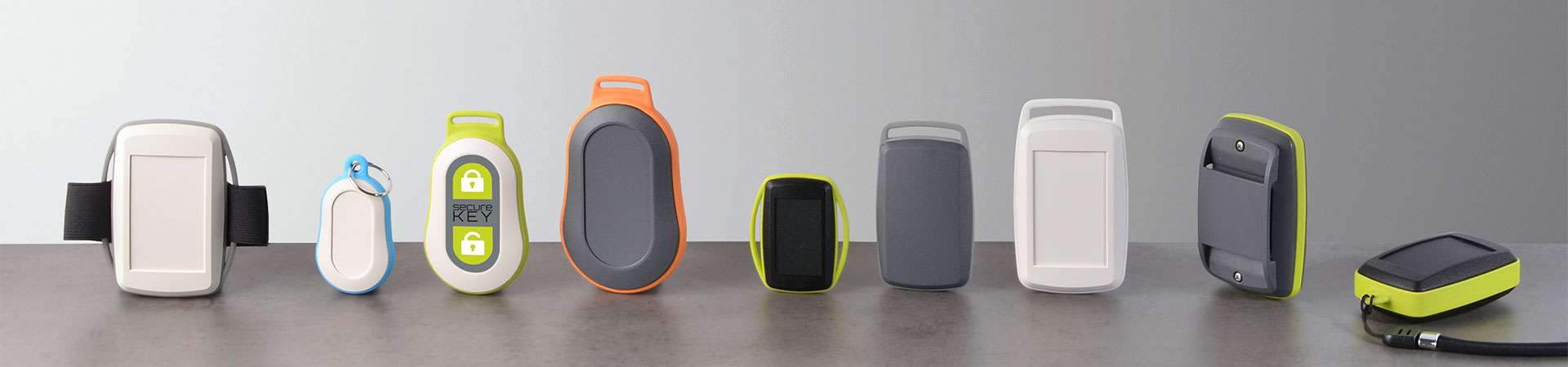 "Fresh colors and shapes for an active public: you can wear MINITEC close to the body, on a lanyard, belt or wrist strap. Mobile smart home functions and IoT solutions can be optimally integrated in MINITEC. Two design variants – an organic form 'Drop' and a more technical design 'Edge' – in conjunction with colourful applications offer the opportunity to make a system perceptible. A clever enclosure that becomes the visible and tangible ambassador for your product!"