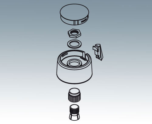 Nut cover 16, without line Suitable for round and wing knob 16 / COM-KNOB 16. Nut cover simply to pin up.