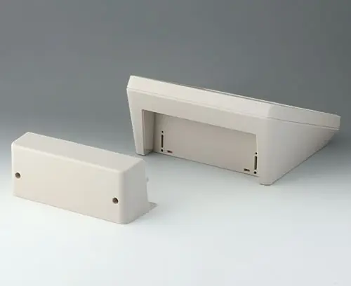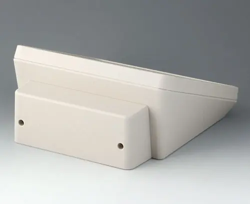 Modern three piece plastic enclosure with an ergonomically inclined operating panel. The deep cover included in the supply provides additional space in a separate area. Fastening pillars for PCBs and components in the top and bottom parts. Wall suspension element and sealing (to raise the protection class up to IP 65) included in the range of accessories. Hidden stainless steel assembly screws with secure Torx heads. Can also be used outdoors thanks to the high-quality material and the robust design.