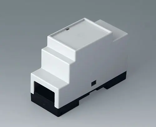 Enclosure for applications where larger components/assemblies need to be fitted inside. Different connection levels flat or high for individual configuration. Case corresponds to DIN 43880, size 1. Simple and quick assembly by locking onto DIN-rails EN 60715 TH35. Base part with fixing pillars for the PCB. Vertical and horizontal guides for additional PCBs.