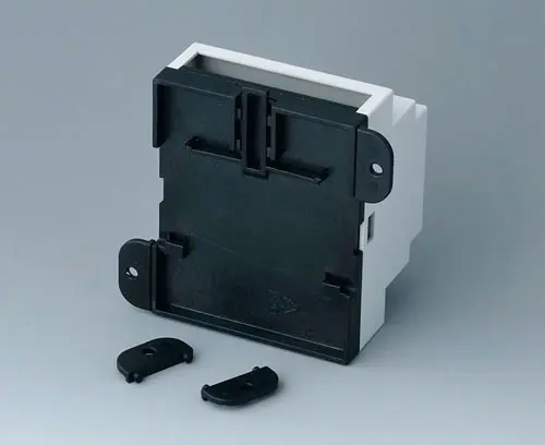RAILTEC B, 2 modules, Vers. III Case corresponds to DIN 43880, size 1. Simple and quick assembly by locking onto DIN-rails EN 60715 TH35. Base part with fixing towers. Top part with ventilation slots. Vertical and horizontal guides for additional PCBs.