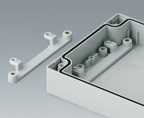 Case shell 4.724", with groove Case shell with thread and fixing towers as separate part. Alternative use either as top or bottom part. Screw fixing outside of the sealing area. Recess of approx. 0.031" for the use of membrane keyboards. Each 1 part with tongue and 1 part with groove needed for 1 case.