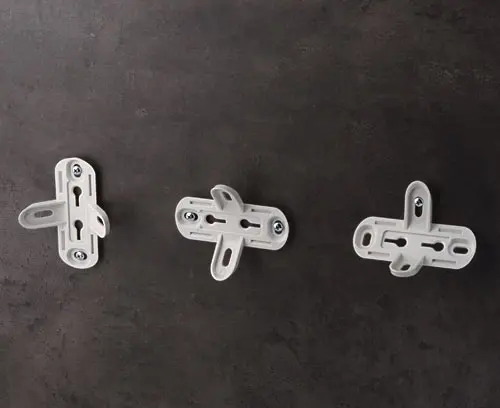 This element allows simple, flush installation of the enclosure to 90° inside corners or on a wall. Snap-in assembly using the universal adapter supplied with the enclosure. (accessory for the complete enclosure).
