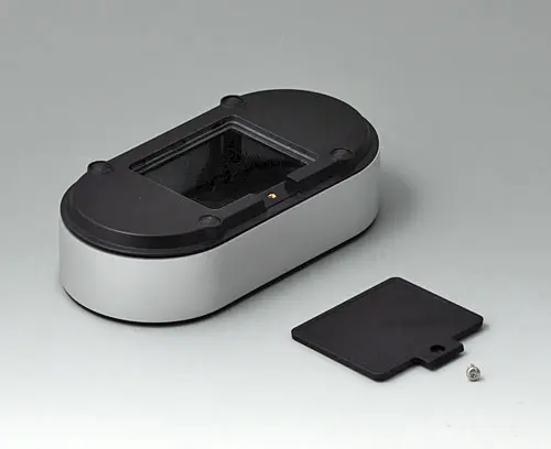 4-part enclosure for many different applications. Sturdy frame made of aluminum, glass bead-blasted and anodized. Plastic parts made of ASA+PC-FR with high UV protection and high flame resistance. Attachment domes for PCBs and components in the top and bottom parts. Top part with recessed surface to protect the membrane keyboard. Bottom part with opening and screw-down cover: practical for the use of a battery compartment or for access to the interior, e.g. for a memory card or batteries that are mounted directly on the PCB. Battery compartment kit 3 x AA with contact springs, battery clips, button cell holder and wall mounting option as accessories.