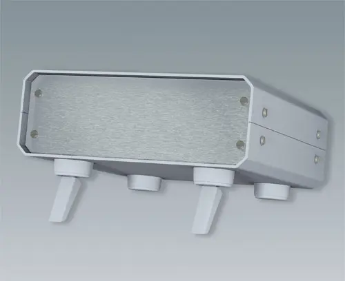 Universal case feet for all types of plastic and metal enclosures with max. 0.118" wall thickness. The tilt legs provide an ergonomic reading angle of the unit. It simply snaps into the feet section and is retractable.