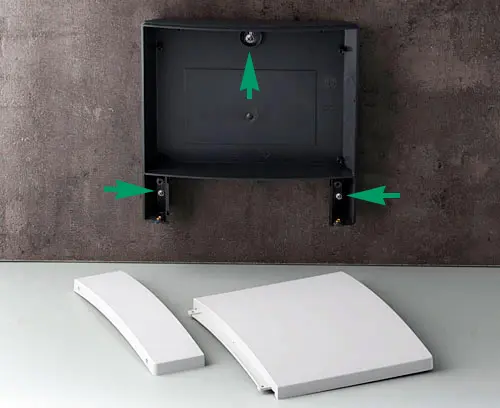 The mounting points on the rear section of the enclosure are now pre-drilled ready for the wall mounting screws — making it quicker and easier to install the electronics device in situ.